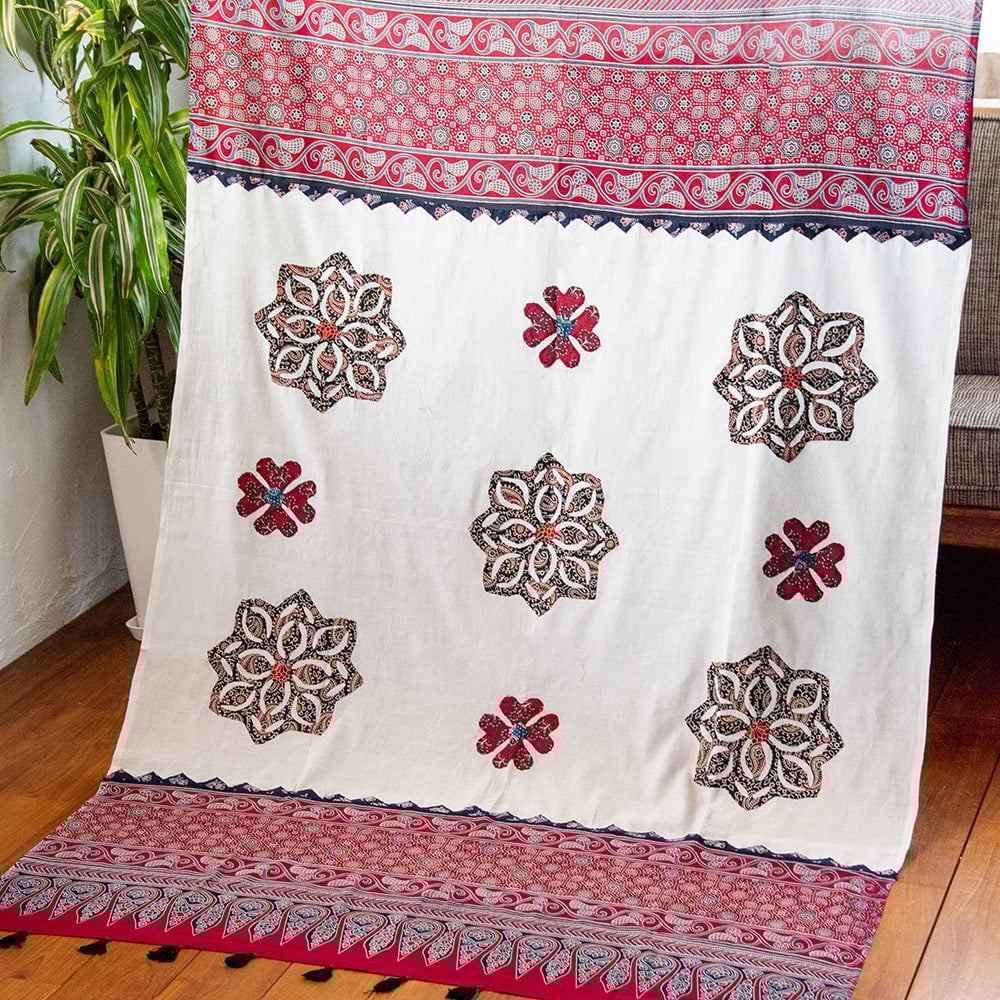 インド伝統のブロックプリント布にバルメール村のアップリケが組み合わさった大判の布地です。