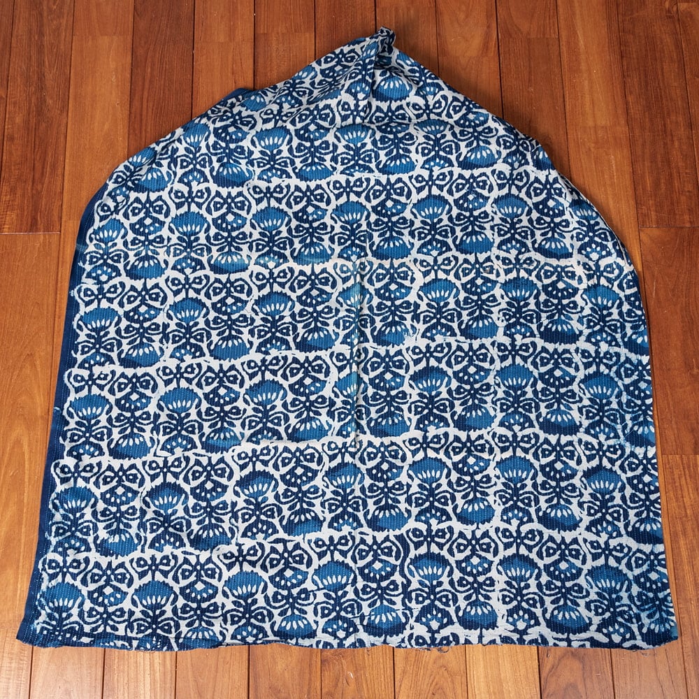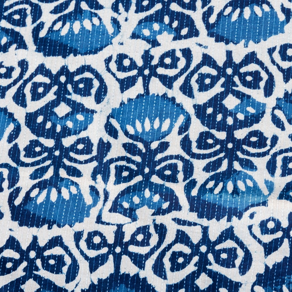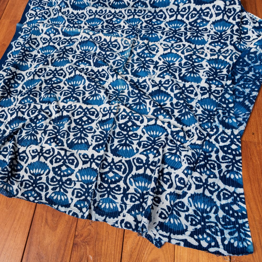 〔1m単位切り売り〕インドの伝統の泥染め(ダブプリント) 藍染め カンタ刺繍布の組み合わせ おしゃれ 生地 テーブルクロス 刺繍素材などへ〔幅約108cm〕 - ネイビー系の同一カテゴリ商品