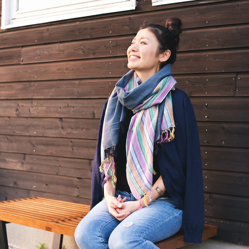 写真で見るのとまた違って、落ち着いた色の、しっかりとした生地のストールでした。首に巻いたり、寒いときには、ひざ掛けにしたり、陽射しが強いときには、頭に巻いたりと、すごく、重宝しています。