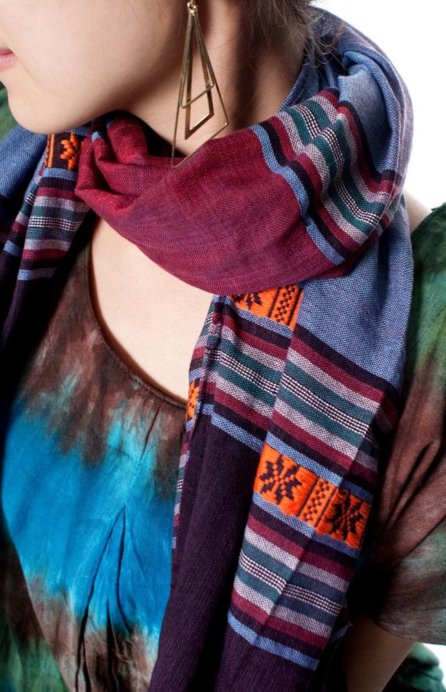 伝統文様と色使いが美しく肌触りの良いこちらの手織り布は、スカーフやストールとしてもオススメ。