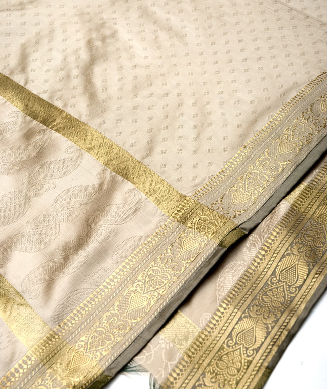 半分に折ったところの写真です。倍の長さがあります。縁には金色の、インド伝統刺繍が施されています。
