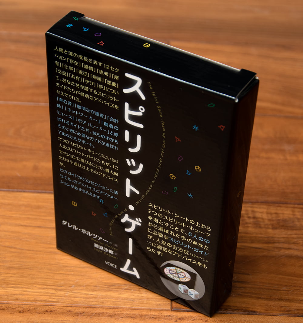 シートの上から2つのスピリット・キューブ(サイコロ)を落とすことで、6人の「スピリット・ガイド」達から選ばれた今のあなたに必要なガイドが、あなたの人生の全方位(12分野)に適切なアドバイスを連れてきます。