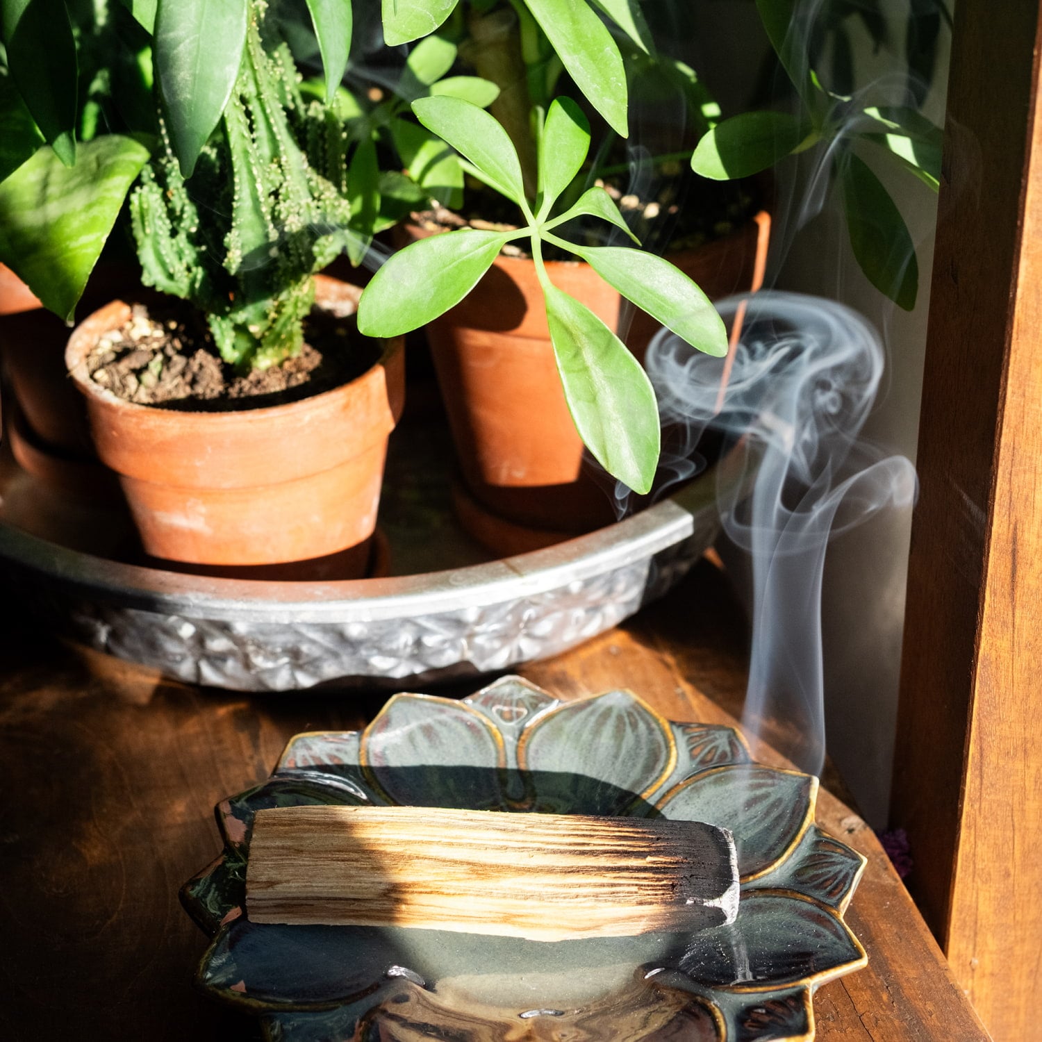 パロサントは、火をつけて焚くだけでなく、そのままでもほのかに甘い香りを楽しめます。手に取って鼻を近づけると、木そのものが持つやさしい香りがふわりと感じられます。 先端に軽く火をつけて煙を立たせると、より深く濃厚な香りが広がります。