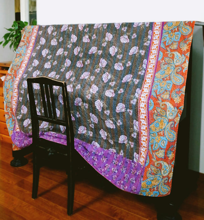 インドの伝統的な刺し子、ラリーキルト(カンタ刺繍)のソファー&ベッドカバーです。