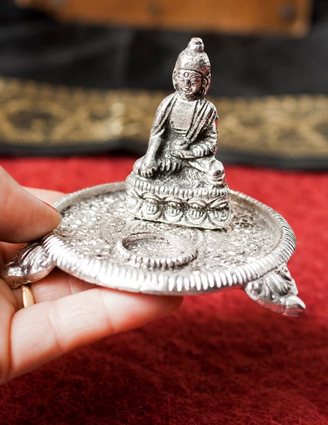 ![ホワイトメタルのお香立て ブッダ[9cm] 3 - お香をセットする部分です。スティック香2本とコーン香1個をセットできます。](https://www.tirakita.com/ind_inshld/Photos/ind_inshld_642_3b.jpg)