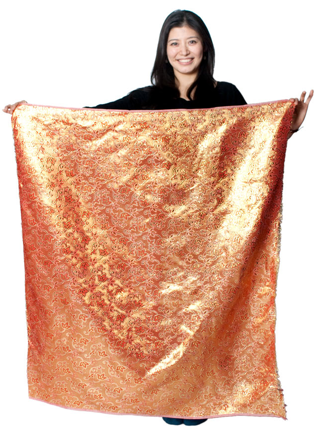 〔1m単位切り売り〕インドの伝統模様布 - ドット柄 樺色〔幅110cm〕の写真〔1m単位切り売り〕インドの伝統模様布 - ドット柄 樺色〔幅110cm〕 2 - 広げたところの写真です。幅はしっかりとあります。左下にあるサイズ比較用の当店カタログは、A4サイズです。〔1m単位切り売り〕インドの伝統模様布 - ドット柄 樺色〔幅110cm〕 3 - 斜め上からの写真です〔1m単位切り売り〕インドの伝統模様布 - ドット柄 樺色〔幅110cm〕 4 - 光の当たり方によって陰影が生まれます〔1m単位切り売り〕インドの伝統模様布 - ドット柄 樺色〔幅110cm〕 5 - 拡大写真です〔1m単位切り売り〕インドの伝統模様布 - ドット柄 樺色〔幅110cm〕 6 - 大きさを感じていただく為、1m分に切った布をモデルさんに持ってもらいました。(以下は同ジャンル品[MB-RSCLTH-188 幅約108cm]の写真です。)〔1m単位切り売り〕インドの伝統模様布 - ドット柄 樺色〔幅110cm〕 7 - 同じく1m分の使用例です。ちょっとした机なら十分覆うことができます。家具のデコレーション用にもオススメ。〔1m単位切り売り〕インドの伝統模様布 - ドット柄 樺色〔幅110cm〕 8 - 光沢感のある布は、光の当たり方で表情がかわりとても綺麗です。ご注文個数に応じて長いサイズになるので、インテリア用だけではなく、手芸や手作りのバッグやお洋服など、DIY素材としてオススメの布です。