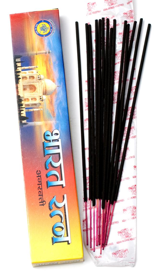 「インドの宝石」と名づけられたお香。パッケージのタージマハルが象徴するような、エキゾチックで深い香りが特徴です。