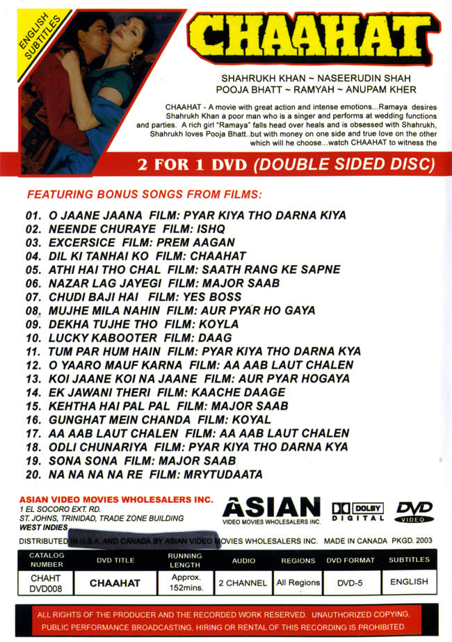 | 出演、製作者 | 監督マヘシュ・バット(Mahesh Bhatt) 男優ナジルラディン・シャー(Naseeruddin Shah) 男優シャールク・カーン(ShahRukh Khan) Pooja Bhatt 男優アヌパム・カー(Anupam Kher) 女優ラムヤ・クリシュナ(Ramya Krishna) Avtar Gill |