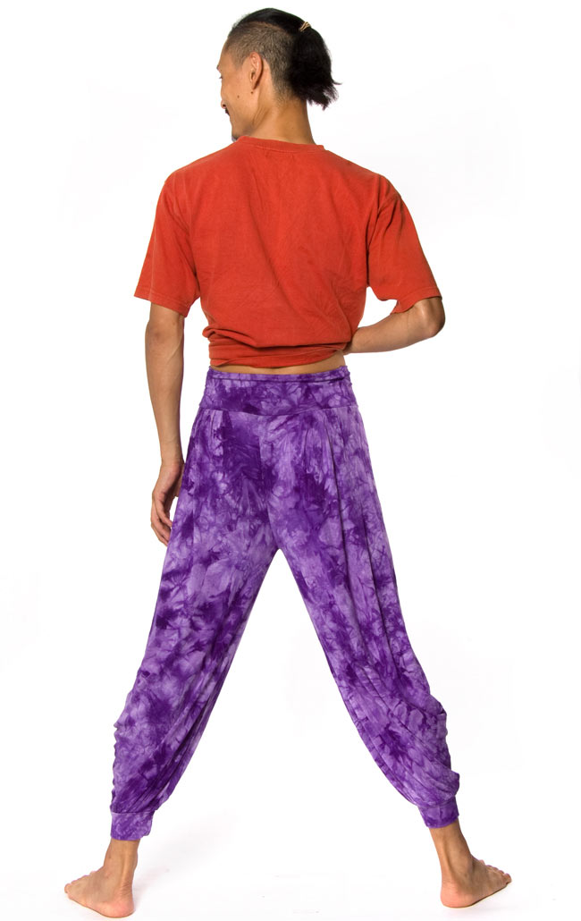 鮮やかに染まったタイダイ染が眩しいアラジンパンツです。素材は肌触りがよく、伸縮性に富んだレーヨンを使用しているので履き心地は楽チン最高です。ティラキタのお客様の間でも人気の一品ですが、履いたら納得。一回はいたら病みつきになっちゃいますよ!
