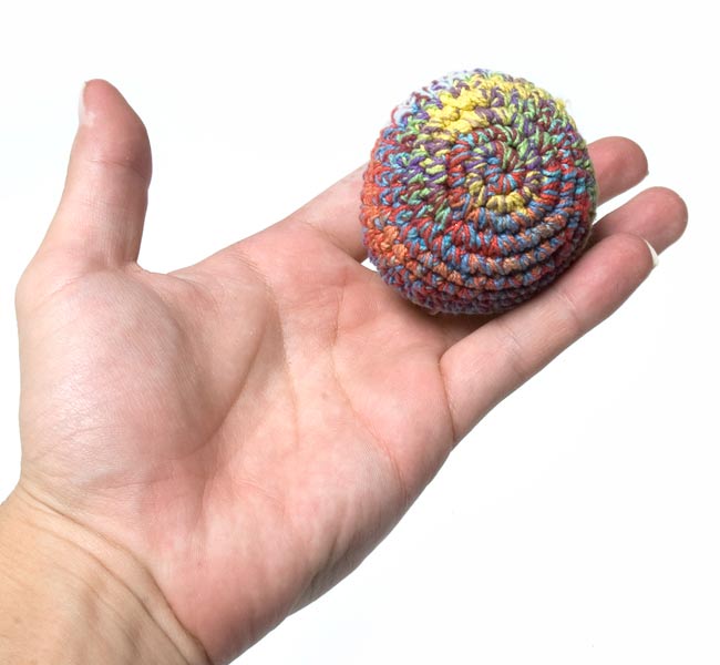 世界をバッグ一つでめぐるバックパッカーの間で長く愛されているカラフルなジャグリングボウルです。バッグの中に入れておいても邪魔にならない重さと大きさ、そしてバス待ちの間など、ちょっとした時間でも手軽に出来る簡単さが人気の秘密。このジャグリングボウルはコットンの糸を一針づつ丁寧に編んでいったもの。縫い目が無いので壊れる心配がありません。扱いやすい適度な重量と、手にしっかりなじむナチュラル系のテイストが魅力です。また、一つ一つのボウルは全部手作りですのでそれぞれ若干色合いがことなります。