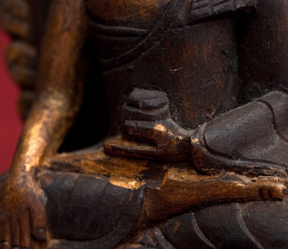 こちらの神像はネパールの方々が、一刀一刀、天然木を手で彫り込んで作り上げた作品です。見て美しいアンティーク仕上げ、木彫の大雑把さを残しつつ、細部まで拘った彫刻、しっとりと落ち着きのある顔の造形、どれをとってもネパール仏師が精魂込めて対峙して作り上げた様子が見て取れます。