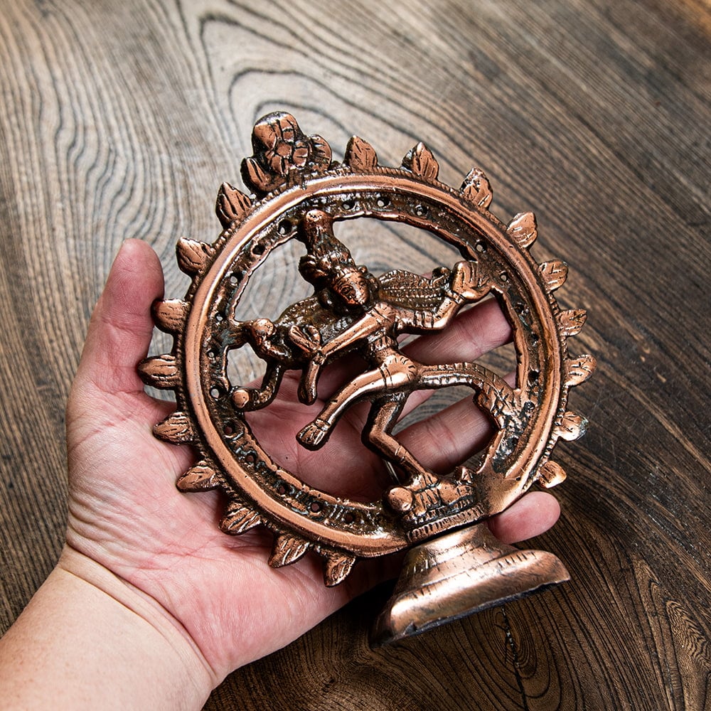インドヒンドゥー教の一番重要な神様シヴァ。シヴァが踊っているこの姿はダンシングシヴァと呼ばれ、古来より一番愛されているスタイルです。世界を創造する神であると同時に破壊する神でもあり、その舞踏が世界を作り続ける一方、手にした炎で宇宙を破壊するとされています。■重厚な雰囲気で持ち運び簡単