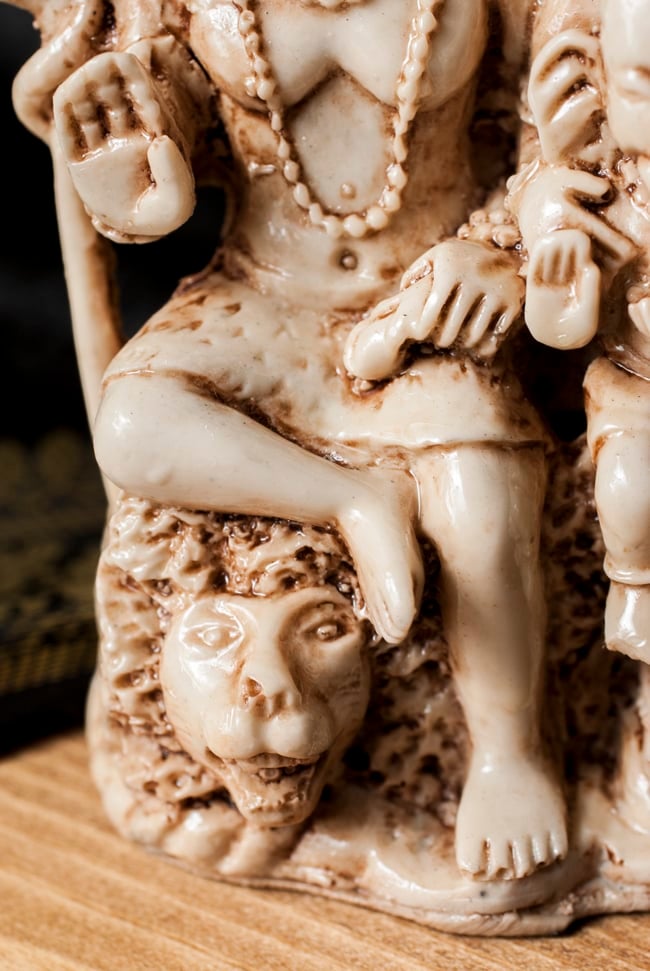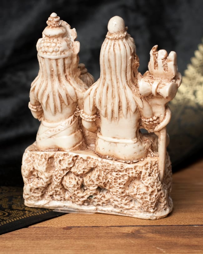偉大なる神々が住まう国インドから重厚な神像が届きました。細部まで彫り込まれ、丁寧に仕上げられたシヴァ・パールヴァティ・ガネーシャ像です。どっしり、サイズも大きすぎず、小さすぎないちょうどいいサイズです。こちらは同じサイズの金属の物に比べると1/5以下のリーズナブルなお値段です。その秘密は、レジンというプラスチックで作られているから。金属で作られた神様像を型どりして、その型にレジンを流し込んで作っています。
