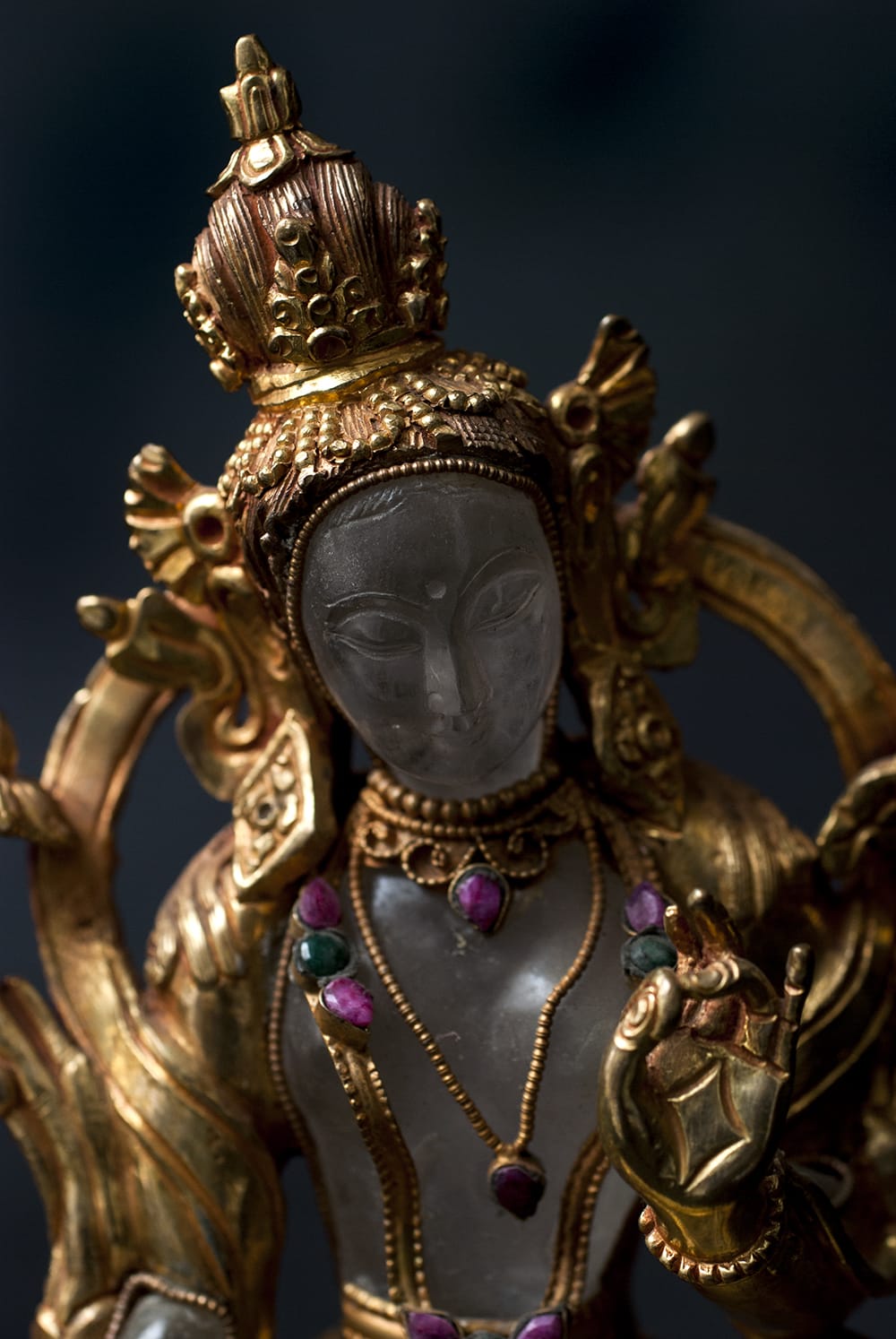 水晶多羅菩薩(クリスタル・ターラー) 銅造鍍金水晶彫琢仕上げ - 24cm