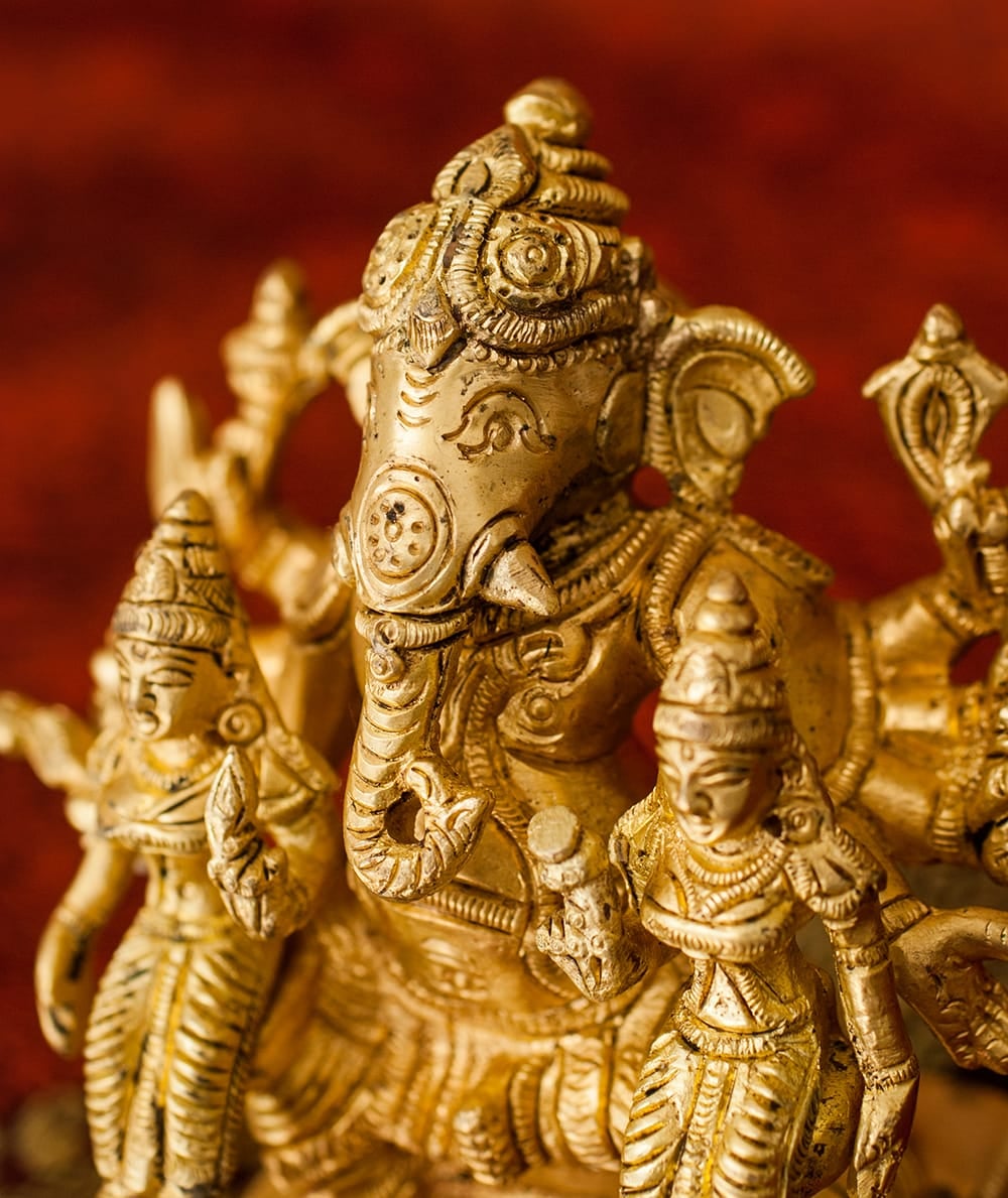 ガネーシャは象の頭を持つという外見のため、彼と結婚したいという娘はなかなかいませんでした。そこでブラフマーの心からリッディとシッディという二人の娘が生じ、ガネーシャはこの二人を妻として迎えたのでした。リッディは富と繁栄の女神であり、シッディは知性と霊性の力を現すとされています。■古来より使われてきたブラス製