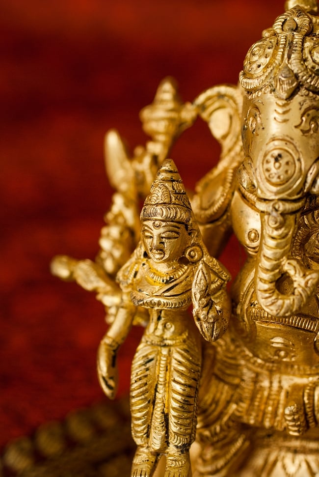 ガネーシャは、ゾウの頭をし、ぽっこりした大きな体を持ちながら、ちっちゃなネズミが乗り物という、なんともユニークな神様です。インドでは学問の神様、商売繁盛の神様として多くの人々の信仰を得ています。インドだけでなく東南アジアでも広く信仰され、タイ、バンコクのショッピングモールの外に大きなガネーシャが座っていたりします。■二人の妻、リッディとシッディ