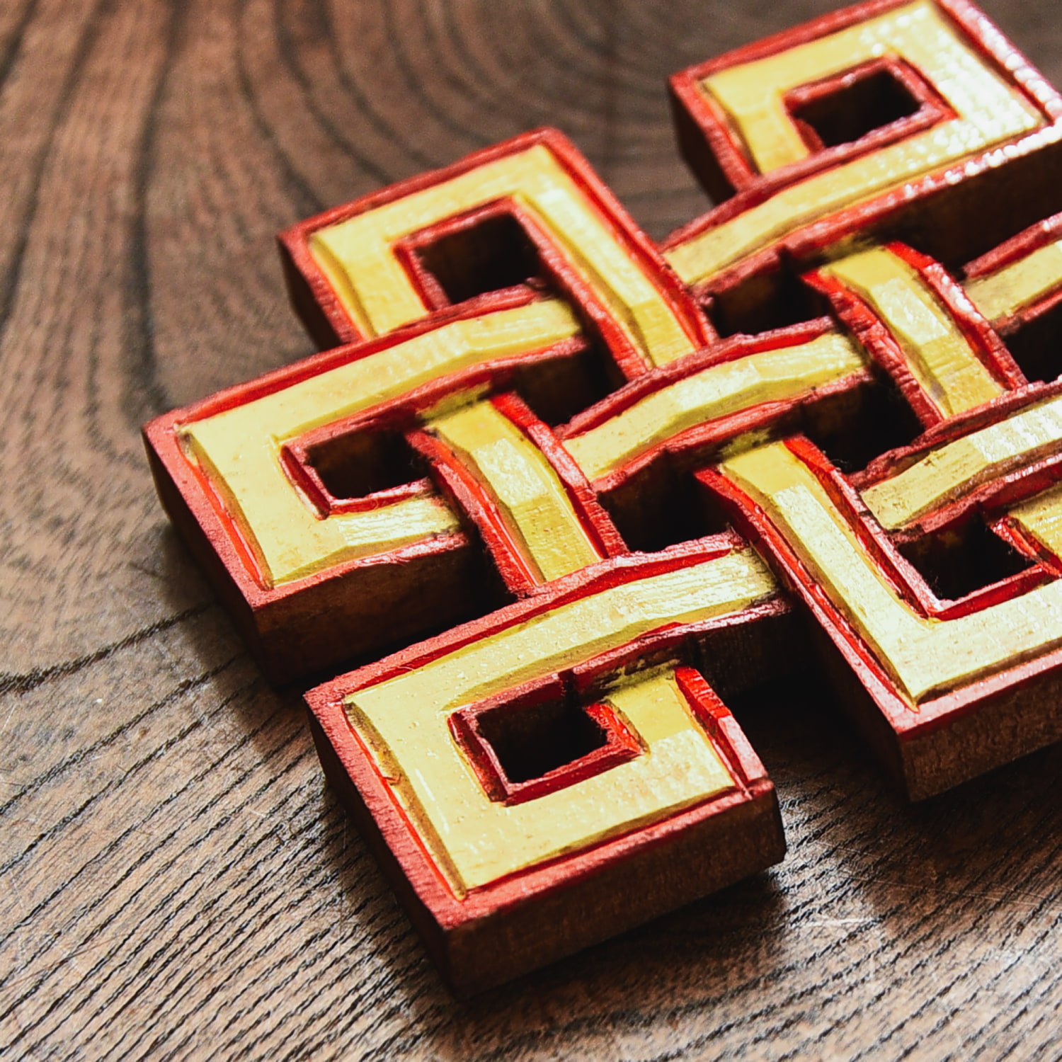 終わりがない結び目の形状から、無限の愛と調和、仏陀の慈悲の教えを意味します。