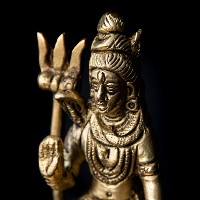 インドヒンドゥー教の一番重要な神様シヴァ。ヒマーラヤを神格化した神ともいわれ、頭頂部のガンガー女神が口から水をはいていることから、それが聖なる川、ガンガーになったといわれています。踊る姿が印象的なシヴァ神ですが、坐像は修行者に愛好されるものでもあります。■古来より使われてきたブラス製