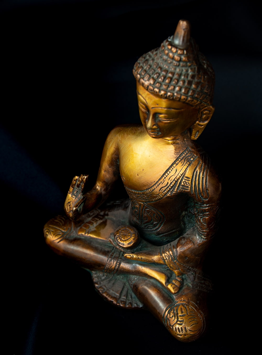 釈迦牟尼仏 坐像 光り輝くブラス製 高さ:26.5cm程度