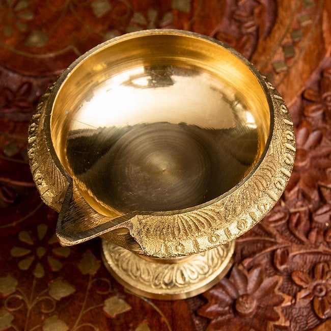 インドの寺院や、ちょっと大きな祭壇で使用されている現地仕様のオイルランプです。オイルランプの油は普通のサラダ油がお使いいただけます。また、灯心はコットンかティッシュペーパーを丸めてお使いください。ご家庭に普通にあるものでオイルランプを灯すことが出来ます。素材は古来より仏像製作に使われてきたブラス製で、耐久性抜群。10年でも20年でもお使い頂け、年月と共に風合いがよくなります。見て、飾ってきっとご満足いただけると思います。■灰皿としてもお使いいただけます