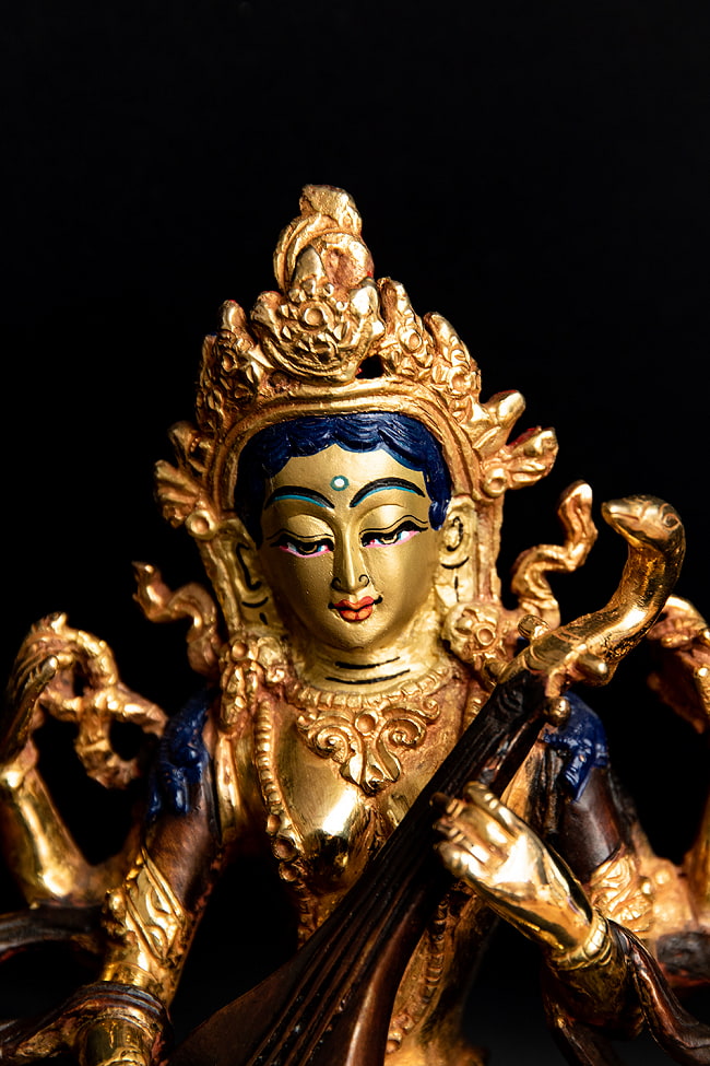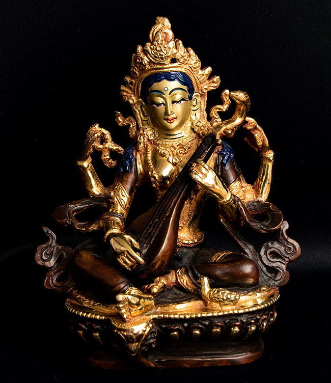 弁財天(サラスヴァティ) 銅造鍍金仕上げ - 16cm