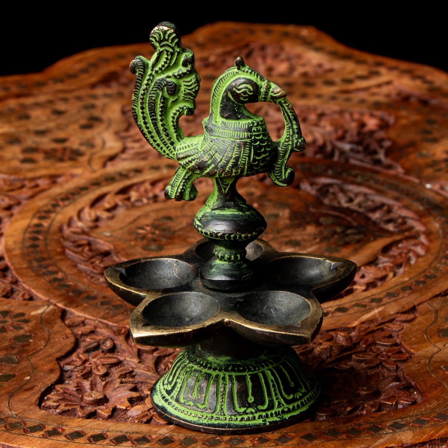 ピーコックのオイルランプ 重厚なブラス製 高さ13cmの類似商品