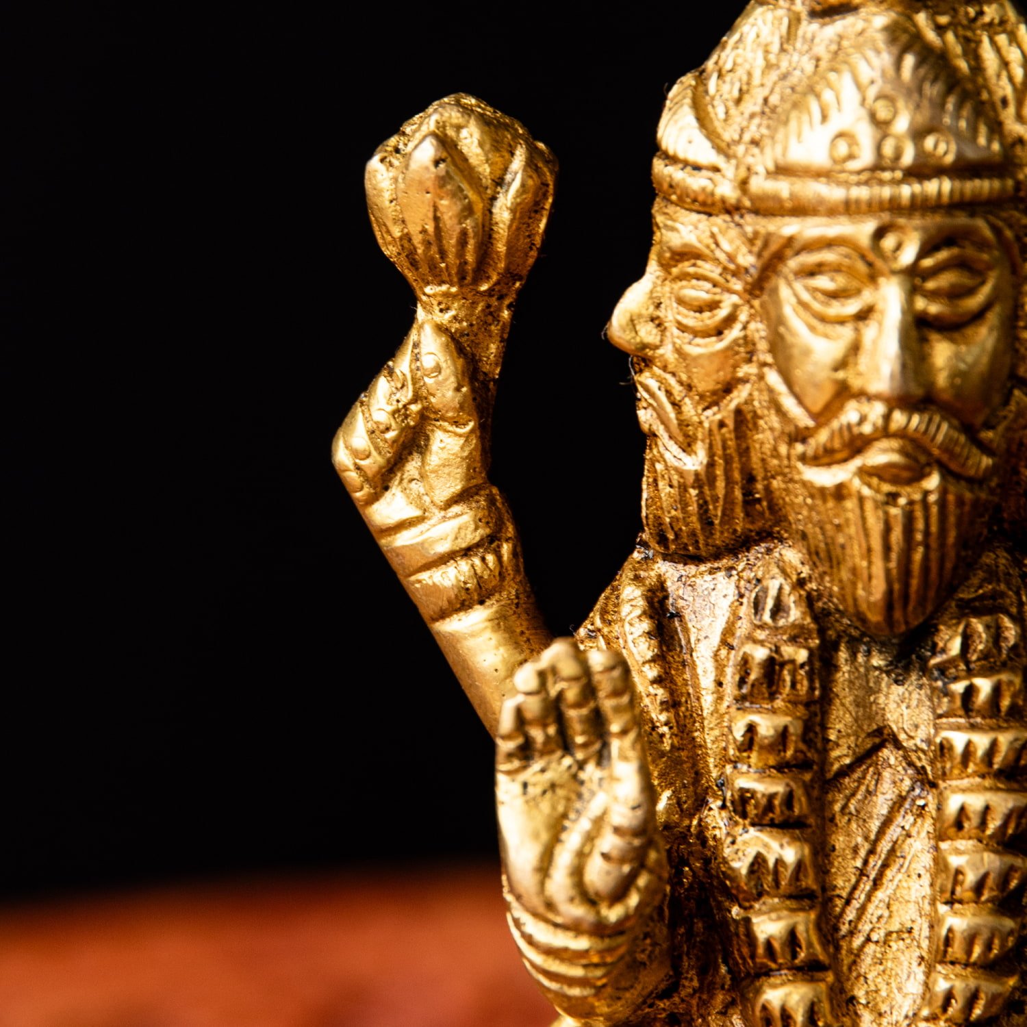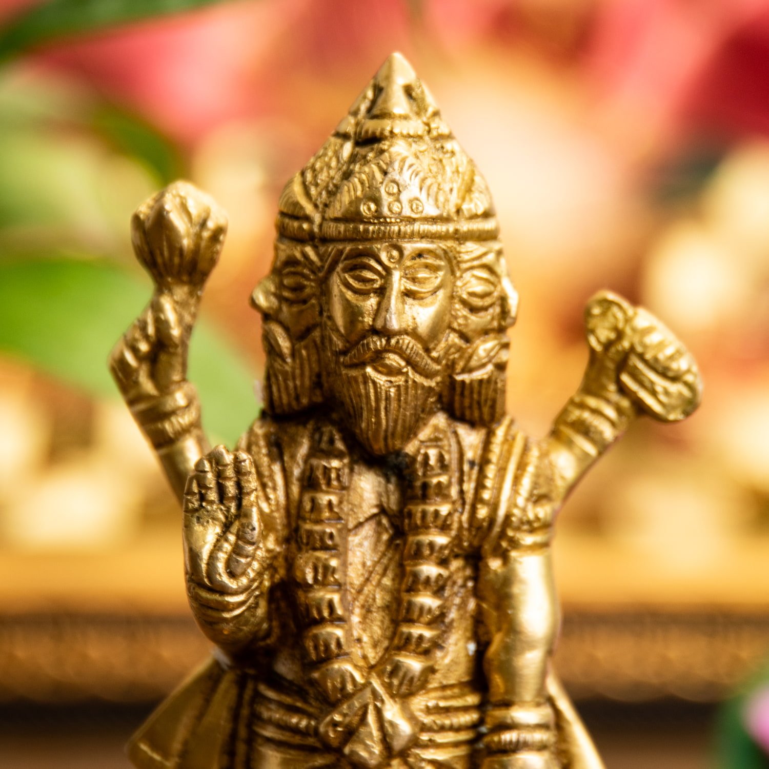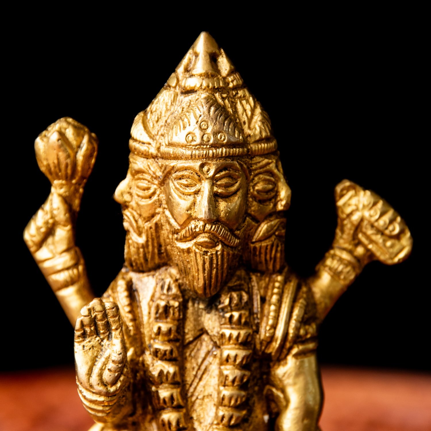 ブラフマー神は、ヒンドゥー教の「創造」を司る神格で、ヴィシュヌ神(維持)・シヴァ神(破壊・変容)と並ぶ三大神(トリムールティ)のひと柱です。宇宙や世界、人間や生き物を「つくる」役割を担っている存在だとされています。改行 ブラフマー神のいちばんの特徴は「四つの顔と四本の腕」。四つの顔は、東西南北すべてを見渡せる「全方位的な知恵」や、「四つのヴェーダ(聖典)」を象徴していると言われます。手にはヴェーダの経典、数珠、水差し(壺)、蓮の花などを持ち、蓮の花の上や白いハンサ(聖なるガチョウ)の乗り物に乗った姿で表現されることが多くなっています。面白いのは、ブラフマー神は三大神の一人なのに、インド本国でもお寺や信仰の数があまり多くないこと。これは、世界を「創造した」あとは他の神々に役割を譲った、という神話的なストーリーや、シヴァ神の妃サラスヴァティー(弁財天)とのエピソードなど、さまざまな伝説が影響していると言われています。