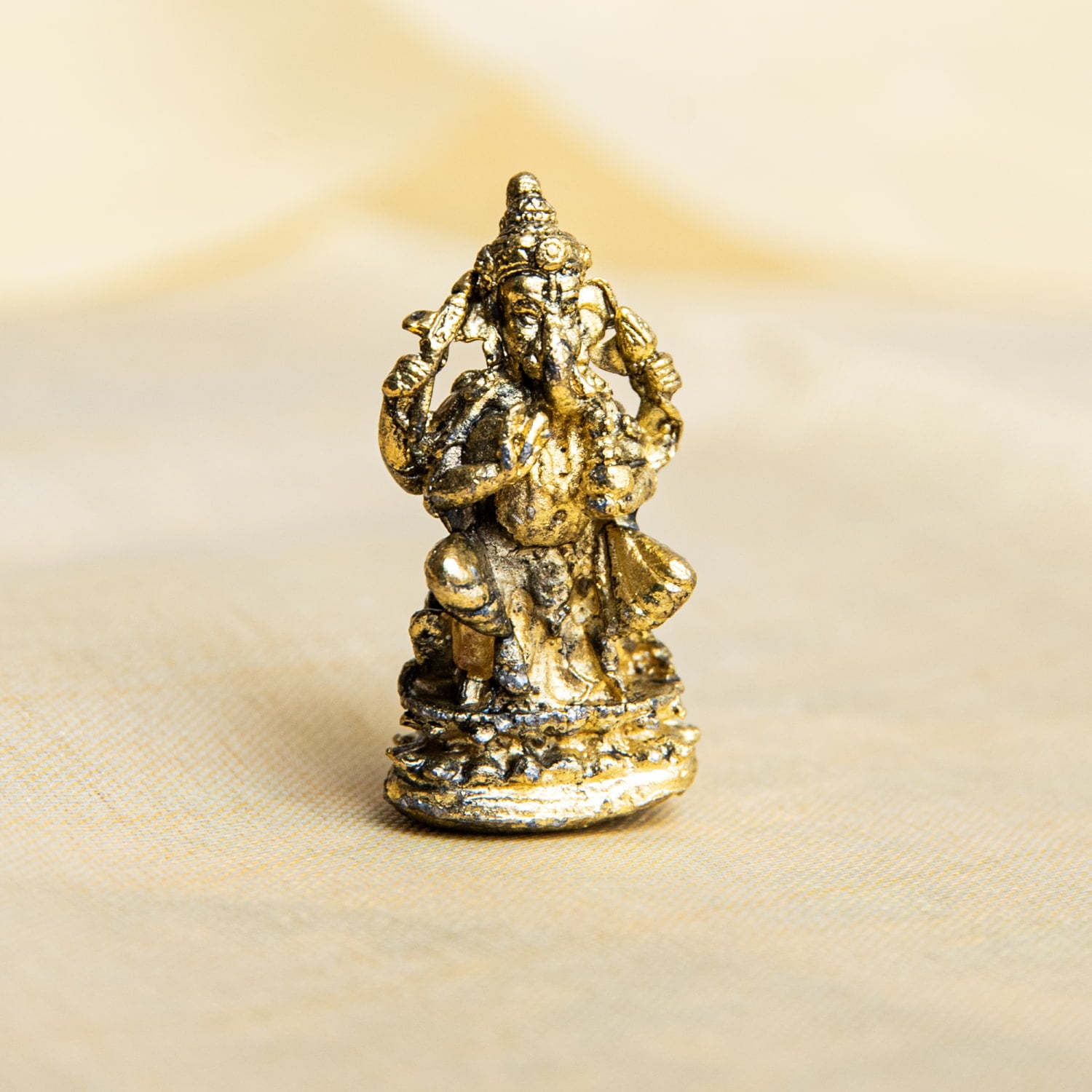 ガネーシャ 坐像 ねずみの上に座るガネーシャ Ganesha ミニ神像の商品写真 1枚目 小さな神様像です。大人気のガネーシャ神