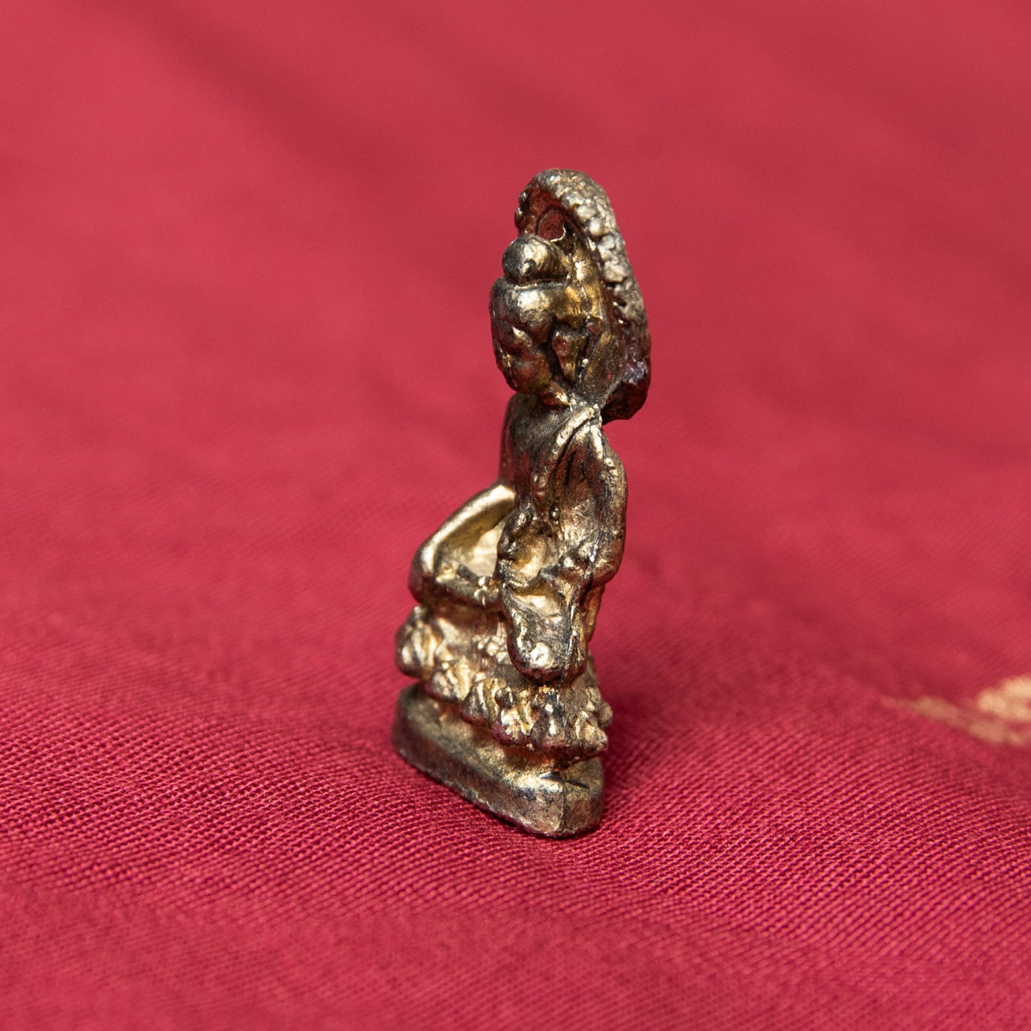 素材は寺院で使われている像と同じ、ブラスを使用していますので、その存在感は本物のまま。小さくも重厚な、金色に光り輝く尊像です。