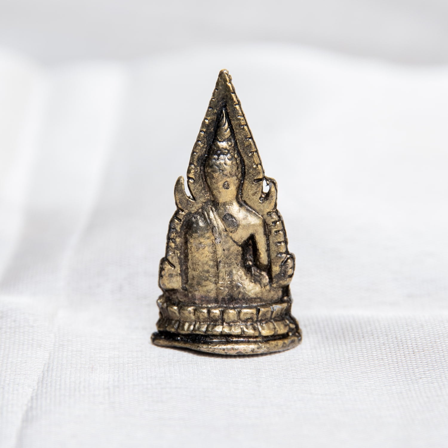素材は寺院で使われている像と同じ、ブラスを使用していますので、その存在感は本物のまま。小さくも重厚な、金色に光り輝く尊像です。