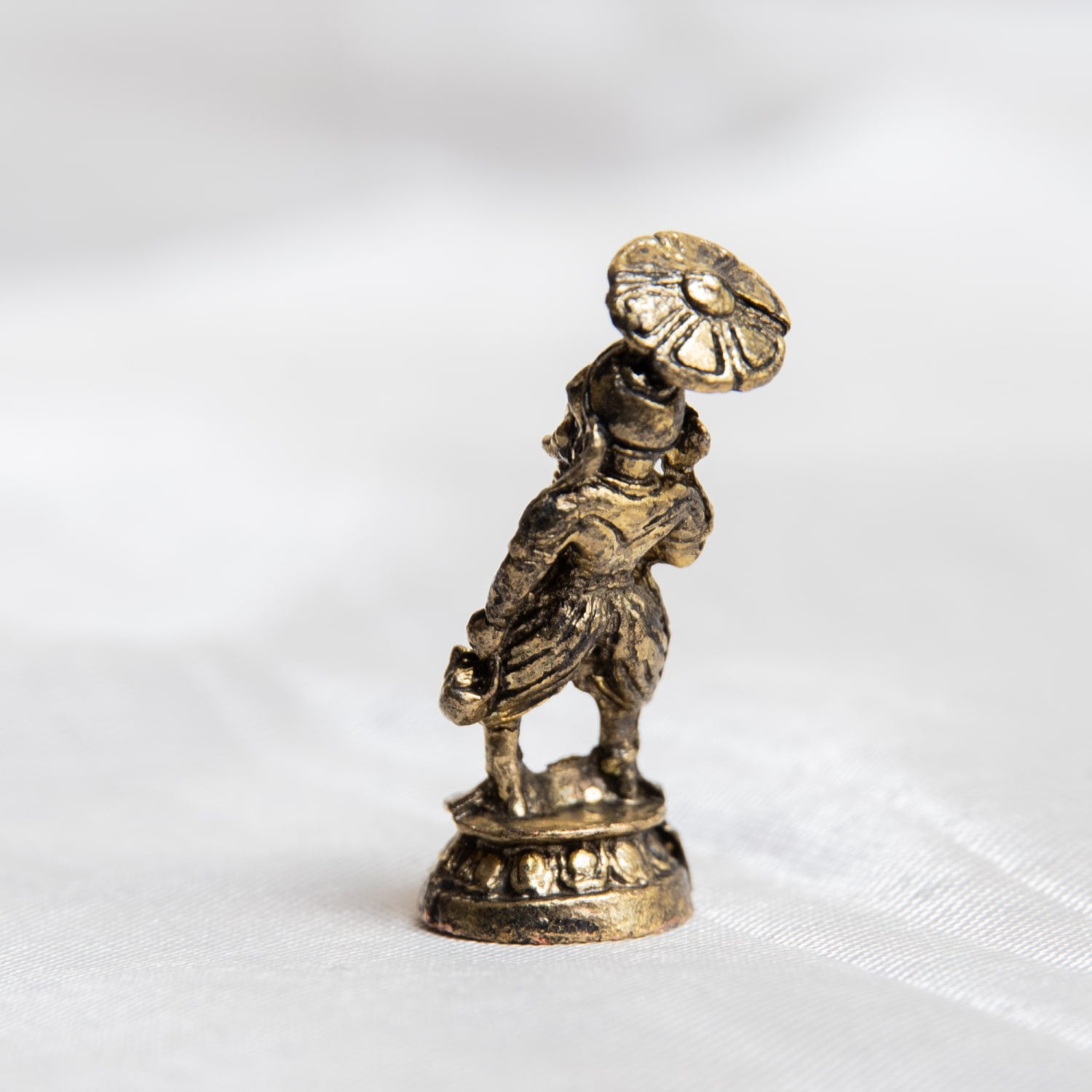 素材は寺院で使われている像と同じ、ブラスを使用していますので、その存在感は本物のまま。小さくも重厚な、金色に光り輝く尊像です。