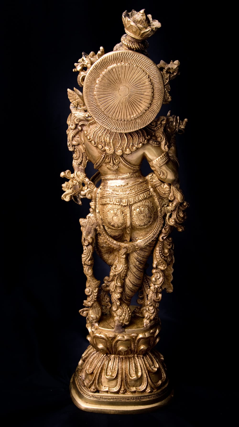 クリシュナ 立像 重厚なブラス製 高さ:46.5cm程度