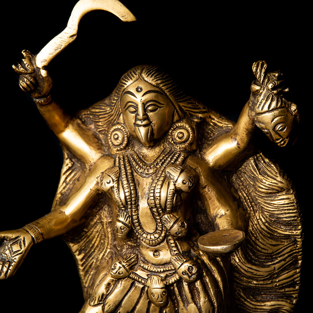 同シリーズのラクシュミー、サラスヴァティーをお迎えしたタイミングで、カーリー女神像が入荷されました。アスラ族のクビや鎌などをもったコワイ印象のある女神様ですので、お迎えするのに勇気が要りましたが(お値段的にも(笑))、3柱でワンセットのような側面もあるので、このタイミングも何らかの「ご縁♪」であると思い、お迎えすることにしました。