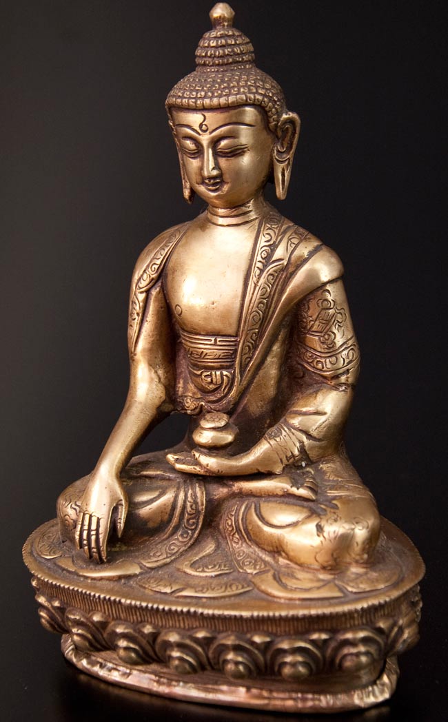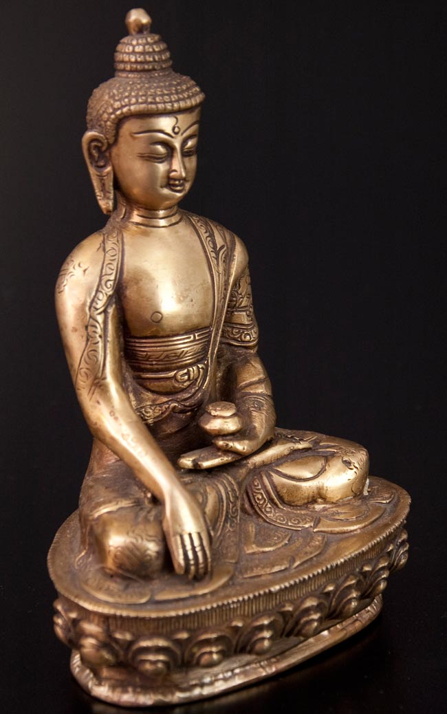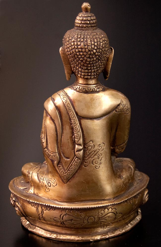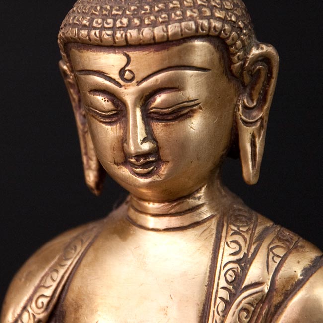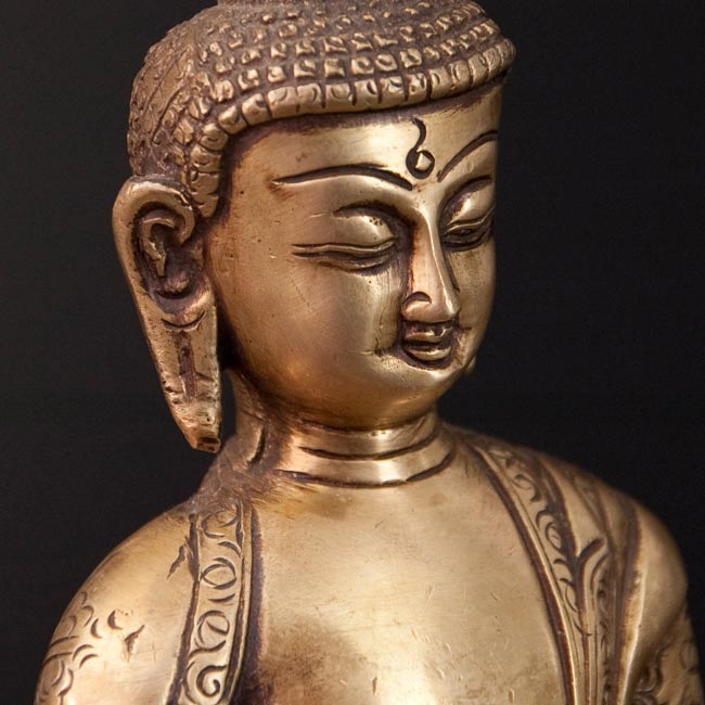 釈迦牟尼仏 坐像 光り輝くブラス製 高さ:26.5cm程度