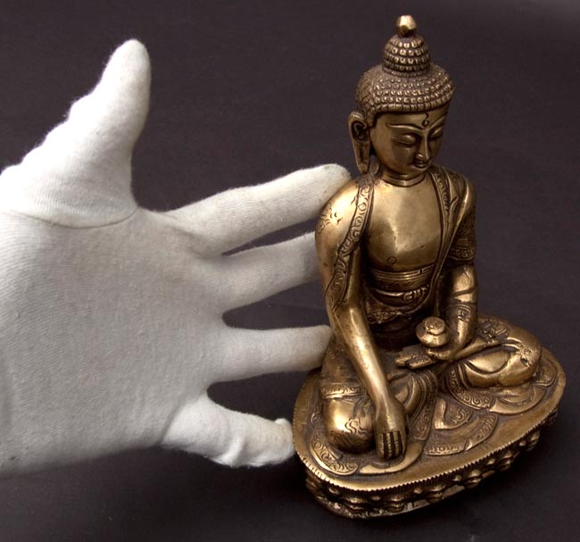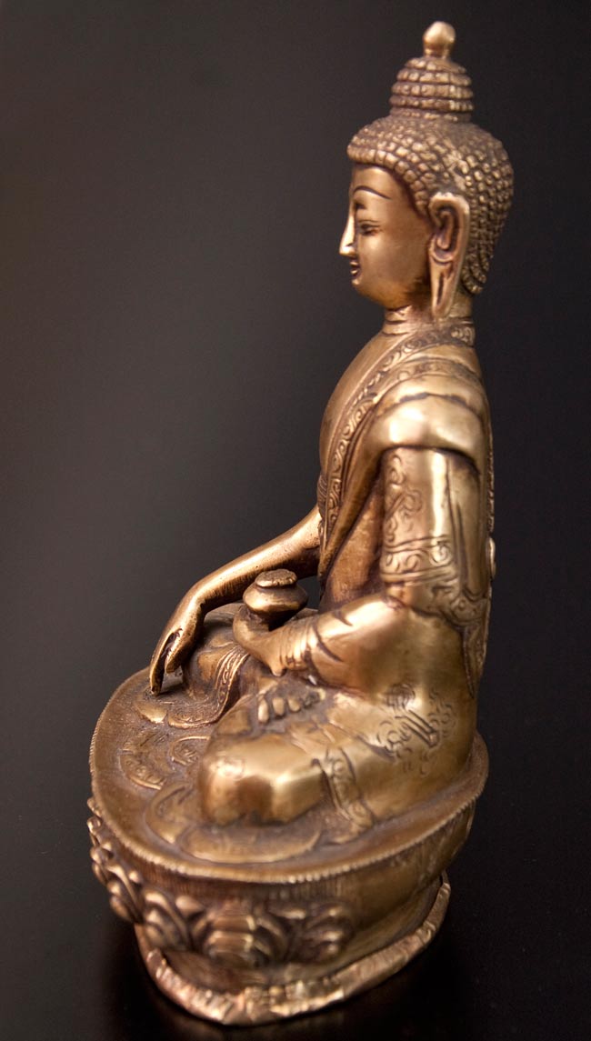 薬師如来 坐像 重厚なブラス製 高さ:33cm程度