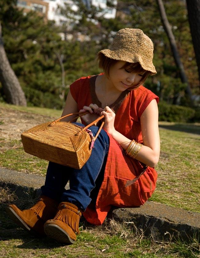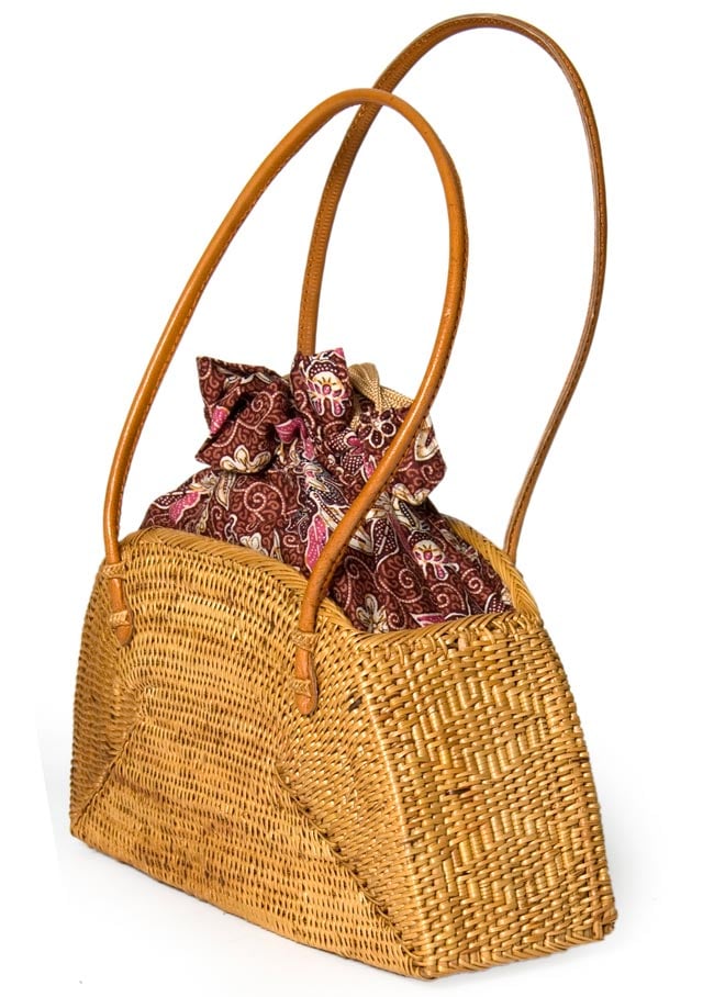 ハンドメイドのぬくもりを感じる、中くらいサイズのアタバッグです。大自然豊かな、インドネシアのバリ島からやってきました。