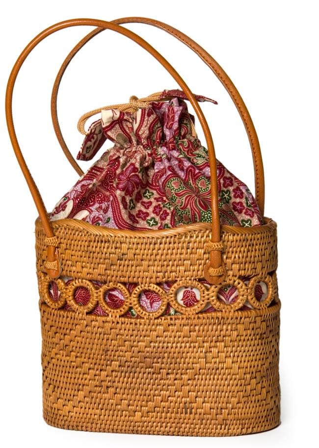 ハンドメイドのぬくもりを感じる、中くらいサイズのアタバッグです。大自然豊かな、インドネシアのバリ島からやってきました。