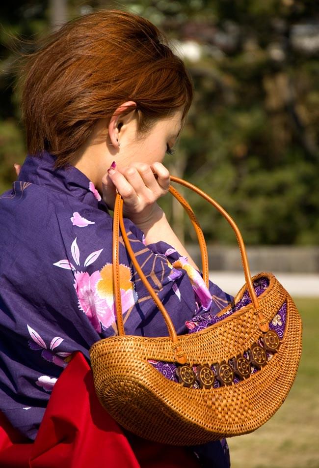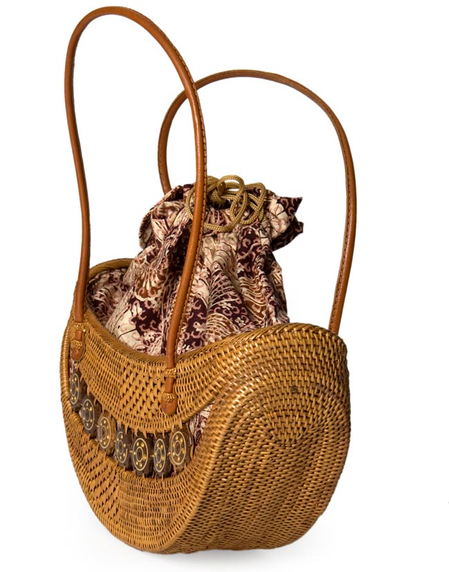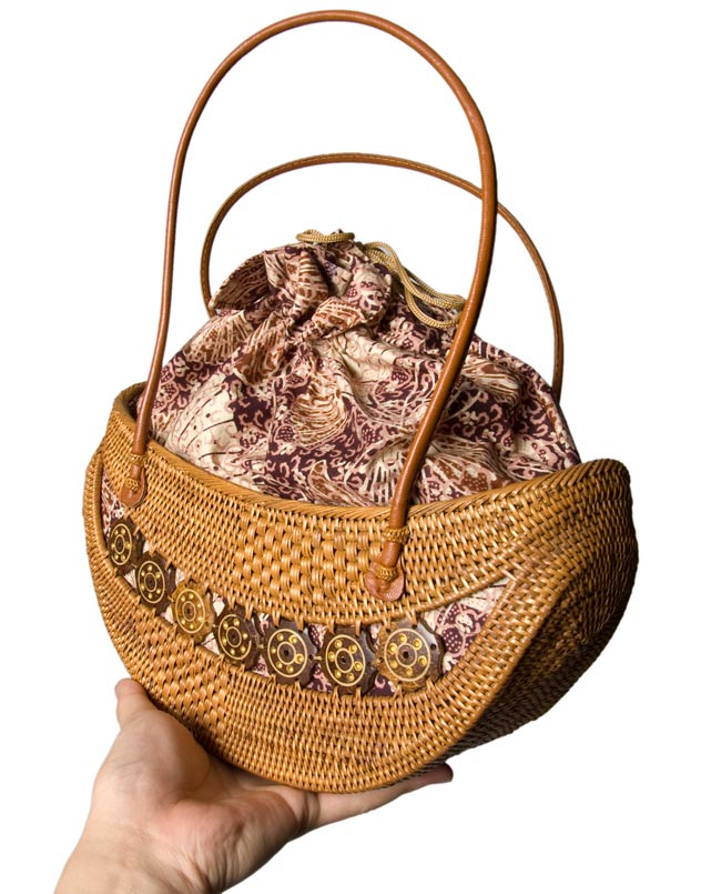 ハンドメイドのぬくもりを感じる、中くらいサイズのアタバッグです。大自然豊かな、インドネシアのバリ島からやってきました。