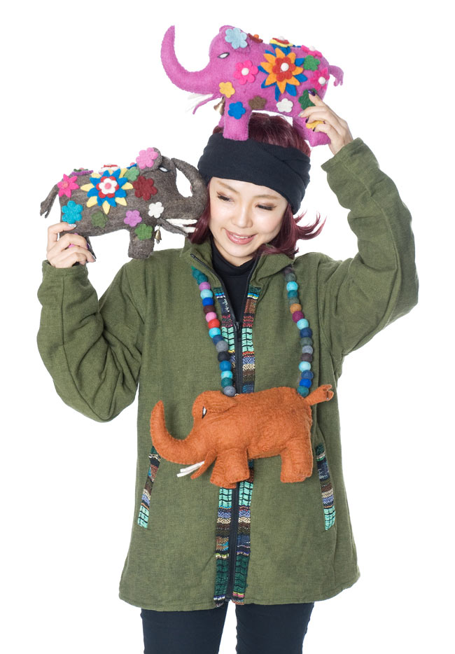 メルマガにてご紹介させて頂いているネパールの不思議なフェルト製品。あまりにも不思議すぎて、仕入れるのをためらっていたのですがメルマガ配信後、たくさんのお客様より「目のイッちゃってるゾウさんが欲しい!」