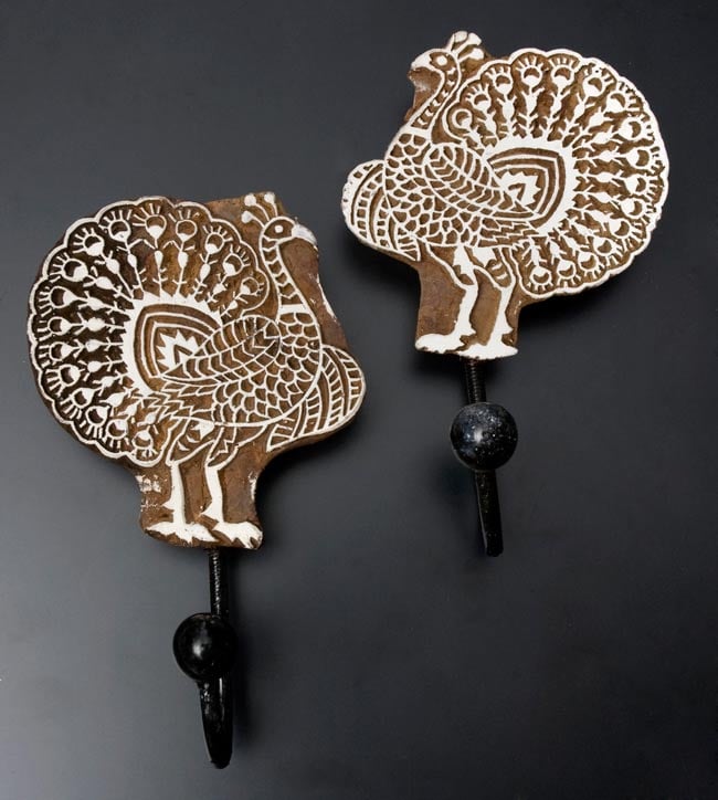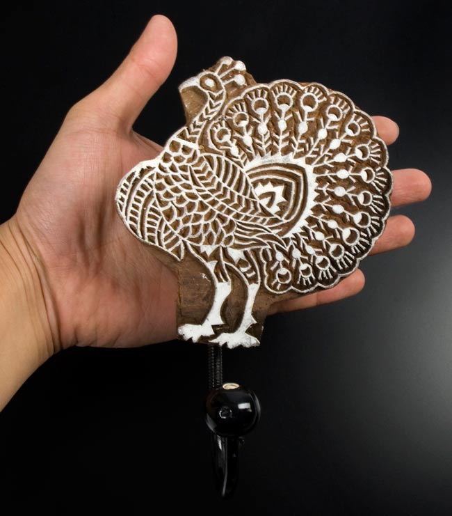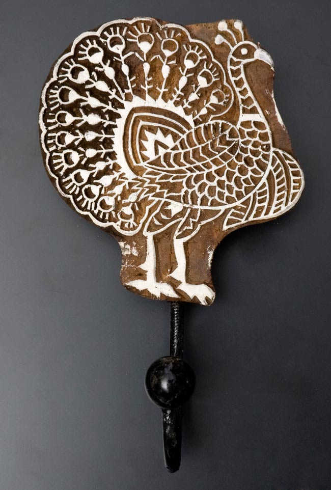 インドの木版印刷に使用されているスタンプを使用したハンガーフック。