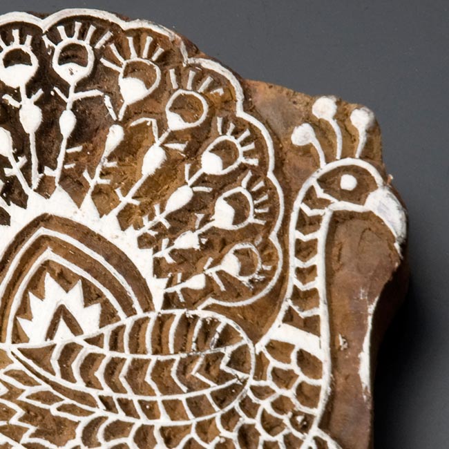 伝統工芸品のマルチクロスの柄として使われているスタンプなので、それぞれ細かく彫り込まれています。